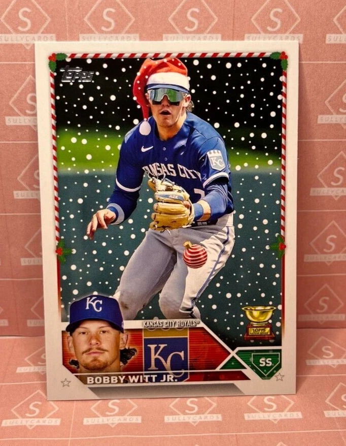 Source : www.beckett.comBobby Witt Jr 2023 Topps Holiday SP Santa Hat! ๐ ๐ผ๐ฅ Variation